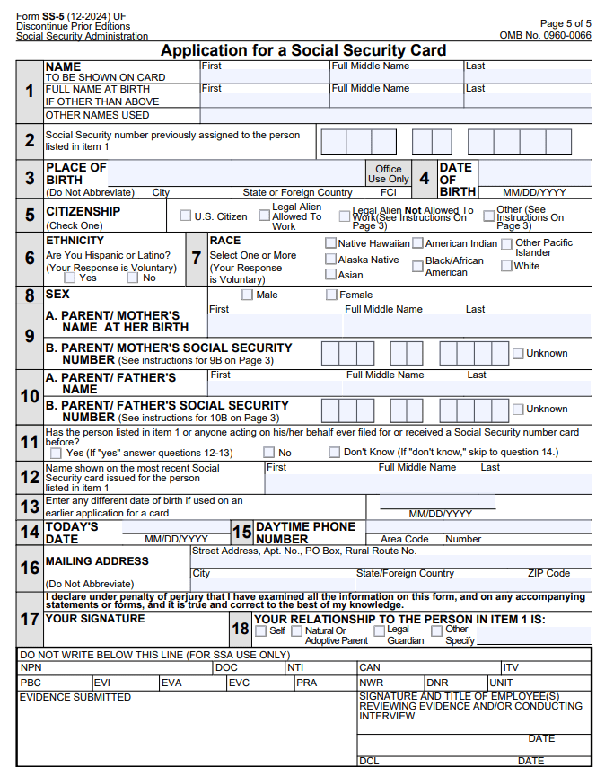 - ๋ค์ด๋ก๋ ๋งํฌ: SSA Form SS-5 PDF